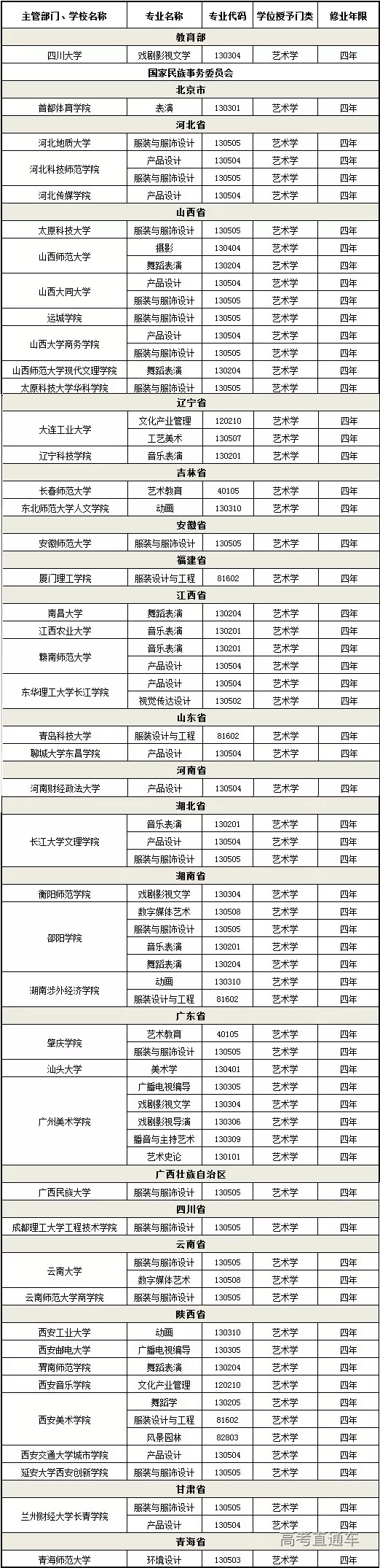 2020年起部分高校的藝術(shù)類專業(yè)已被撤銷,如西安美術(shù)學院的舞蹈學,服裝設(shè)計與工程,云南大學的服裝與服飾設(shè)計,數(shù)字媒體藝術(shù)等。