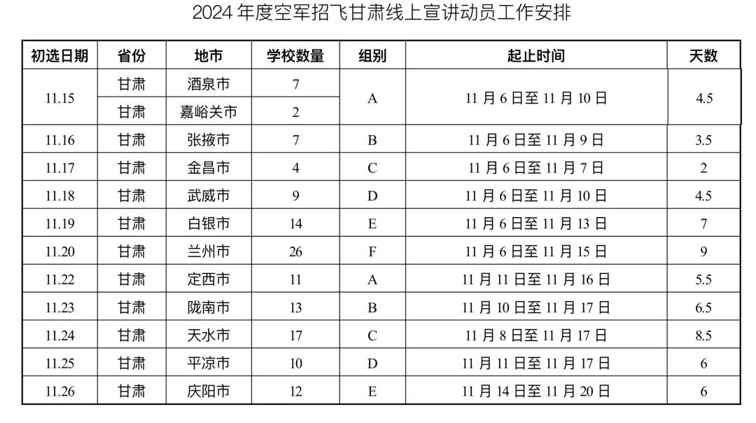 1.2024年度空軍招飛甘肅線上宣講動員工作安排