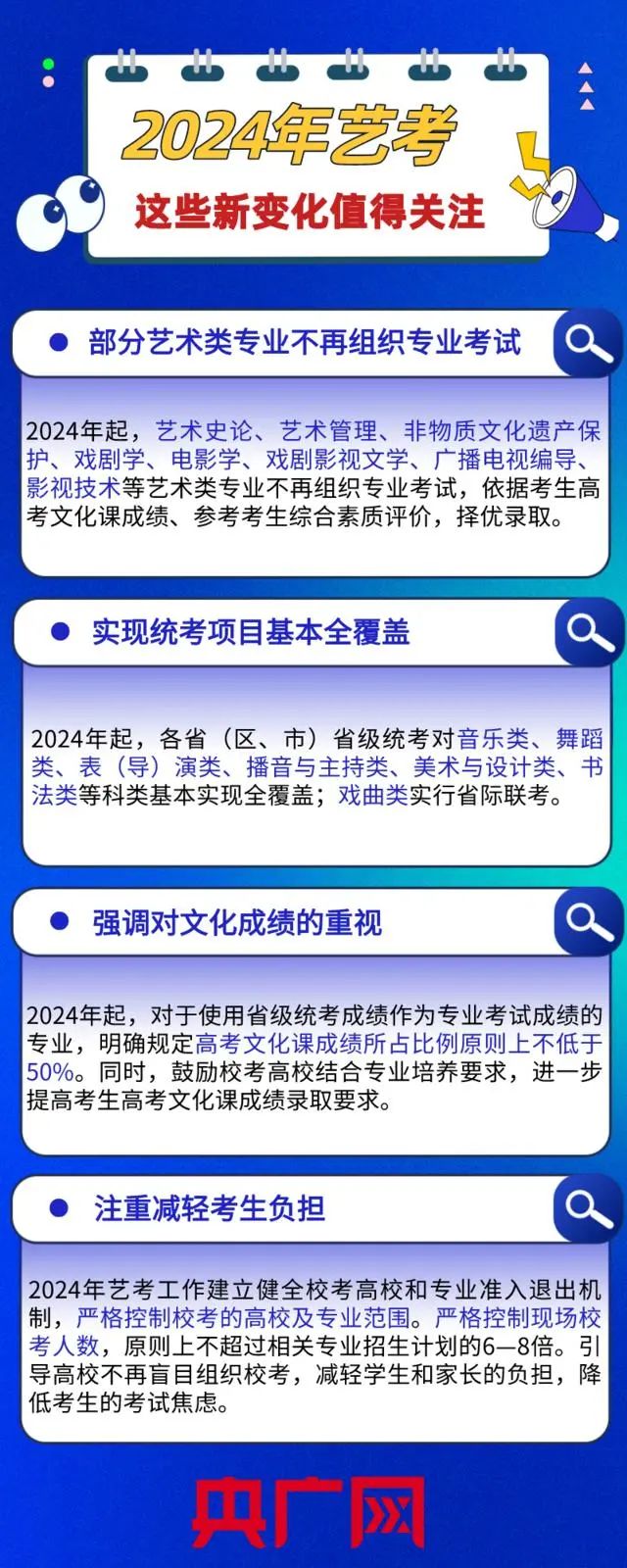 日前,教育部辦公廳印發(fā)了《關(guān)于做好2024年普通高等學(xué)校部分特殊類型招生工作的通知》(以下簡稱《通知》),《通知》對(duì)2024年高校藝術(shù)類專業(yè)招生工作作出詳細(xì)部署。藝考是藝術(shù)類人才培養(yǎng)的重要起點(diǎn)。和往年相比,2024年藝考有哪些新變化?戳圖了解↓