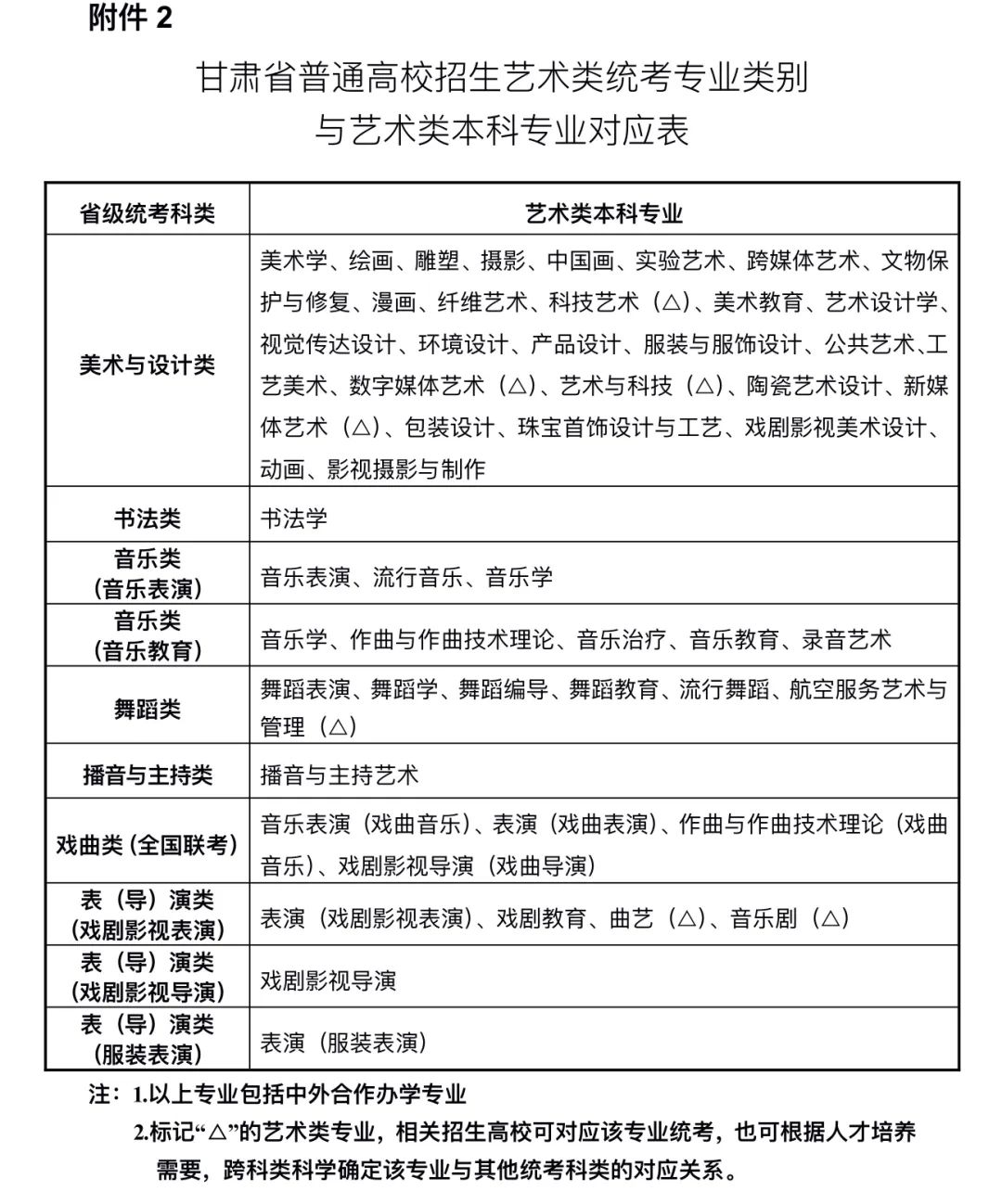 2.甘肅省普通高校招生藝術(shù)類統(tǒng)考專業(yè)類別與藝術(shù)類本科專業(yè)對(duì)應(yīng)表