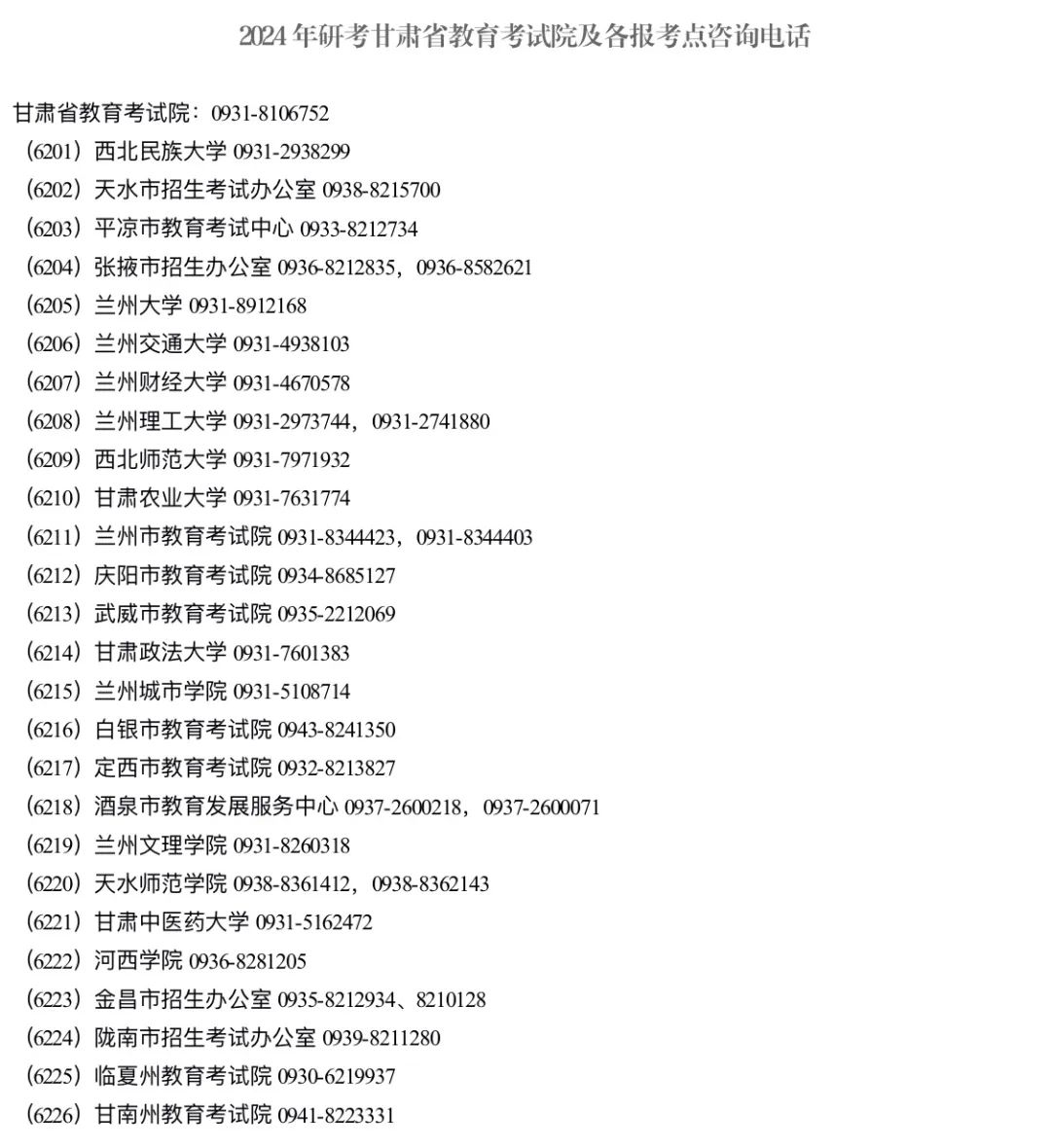 附件:2024年研考甘肅省教育考試院及各報(bào)考點(diǎn)咨詢電話