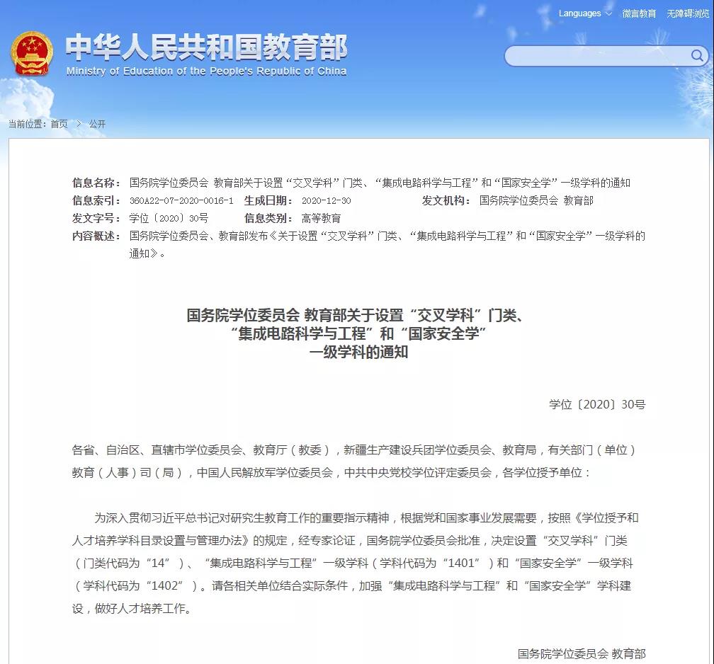 1月13日,教育部網(wǎng)站正式公布了《國務(wù)院學位委員會教育部關(guān)于設(shè)置“交叉學科”門類等的通知》。我國原有的13大學科門類正式升級為14大學科門類,分別為:哲學、經(jīng)濟學、法學、教育學、文學、歷史學、理學、工學、農(nóng)學、醫(yī)學、軍事學、管理學、藝術(shù)學、交叉學科(新增)。