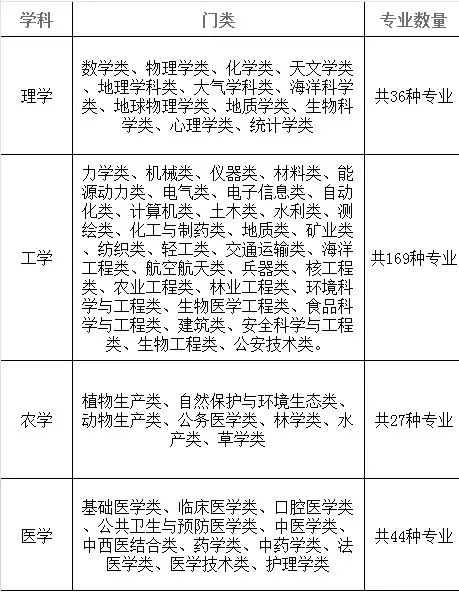 下面表格簡單列出理科可以選擇的四個(gè)門類專業(yè)的大致范圍。
