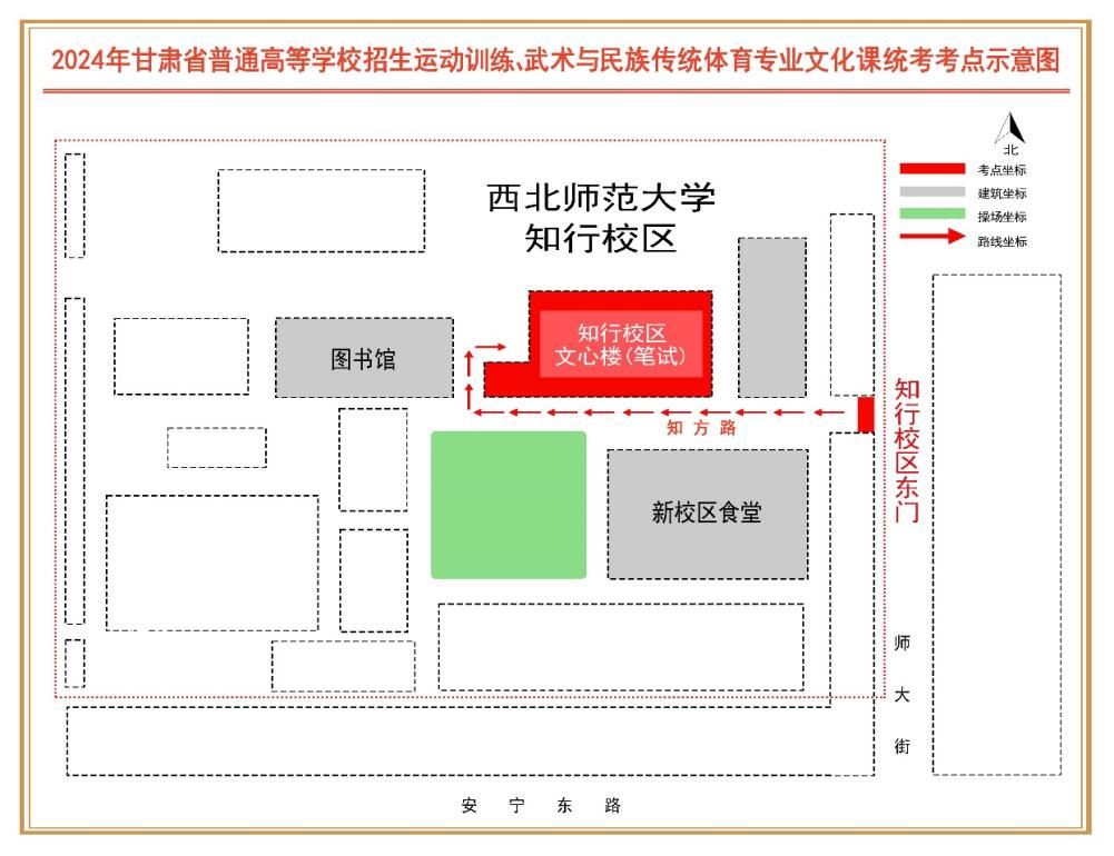 2024年甘肅省普通高校招生運(yùn)動(dòng)訓(xùn)練、武術(shù)與民族傳統(tǒng)體育專(zhuān)業(yè)文化考試將于3月30日-31日在西北師范大學(xué)知行校區(qū)(蘭州市安寧區(qū)邱家灣37號(hào))進(jìn)行。現(xiàn)就考試相關(guān)事項(xiàng)告知如下: