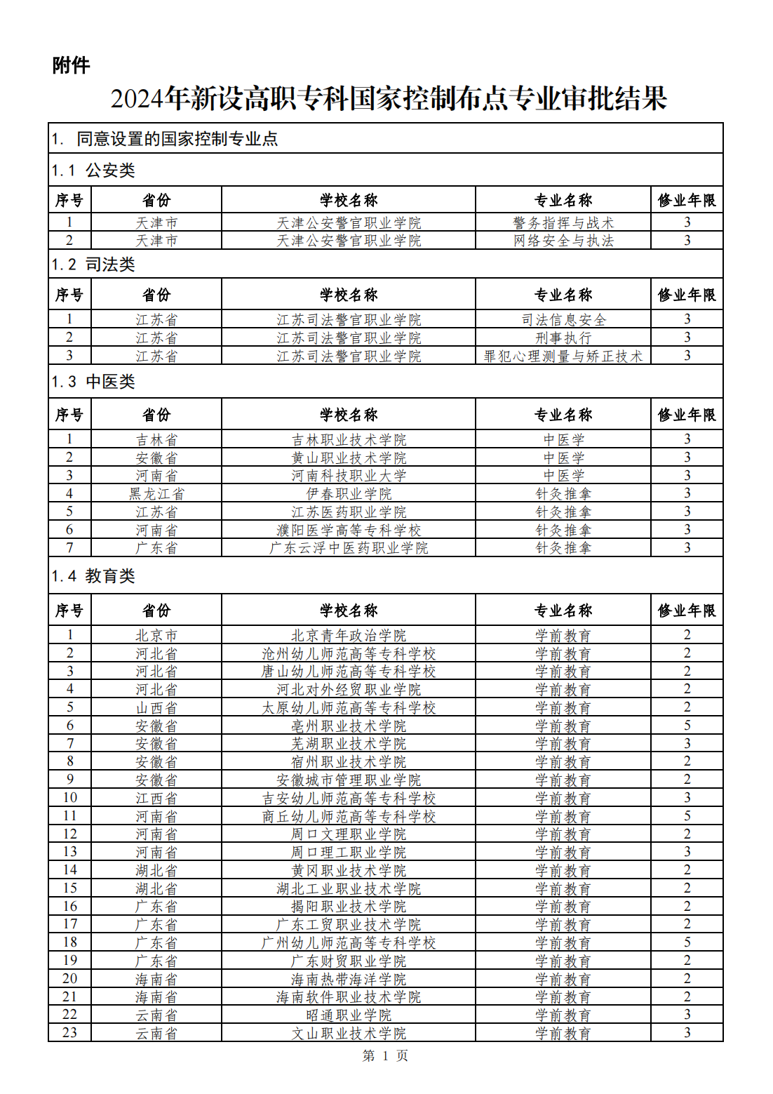 近日,教育部印發(fā)通知,公布2024年高等職業(yè)教育專(zhuān)科專(zhuān)業(yè)設(shè)置備案和審批結(jié)果。先跟教育小微一起來(lái)看2024年新設(shè)高職專(zhuān)科國(guó)家控制布點(diǎn)專(zhuān)業(yè)審批結(jié)果。