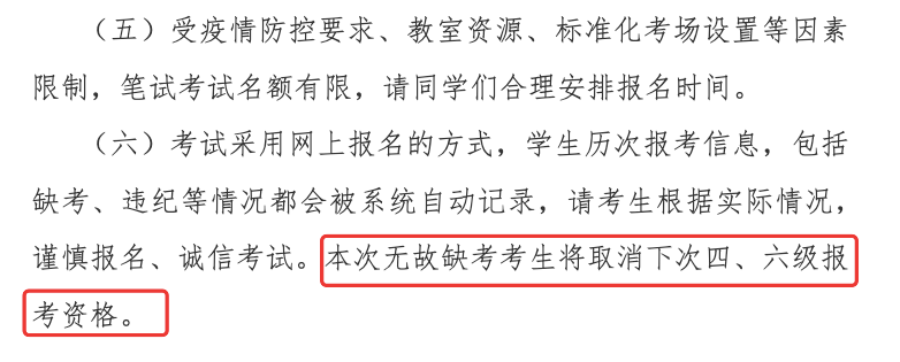 比如南開大學(xué)在發(fā)布的2020年9月19日英語四六級考試報名通知中格外注明了一點:2020年9月四六級考試缺考將取消下次報考資格。