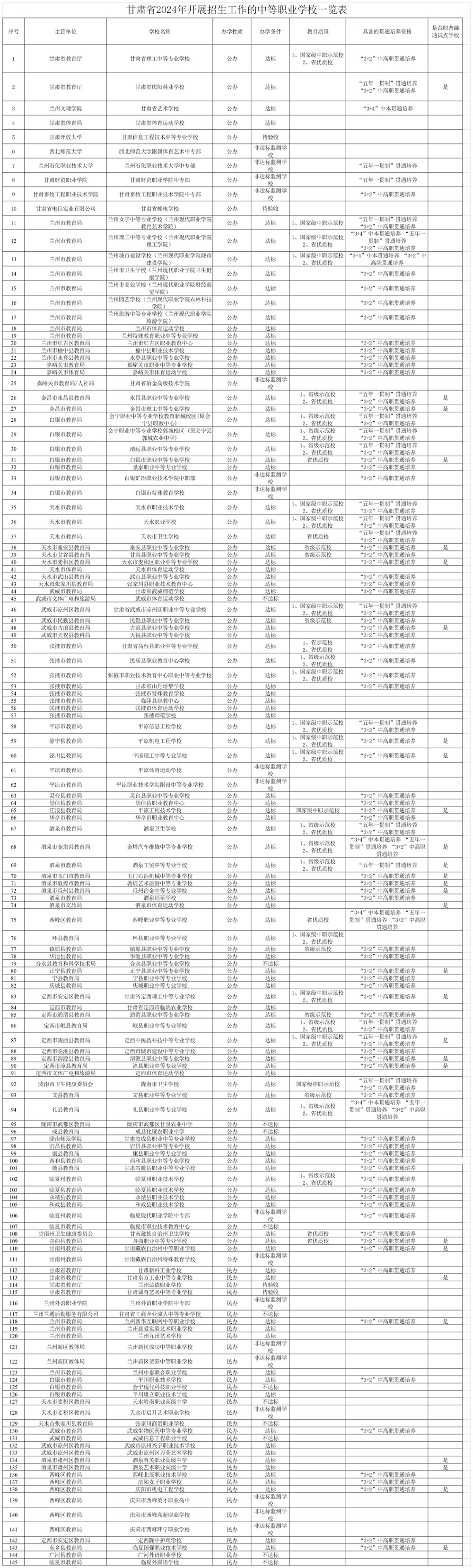 一、甘肅省2024年招生的中等職業(yè)學(xué)校