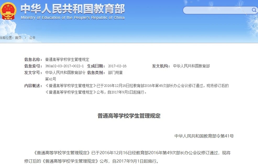 2005年,教育部出臺(tái)《普通高等學(xué)校學(xué)生管理規(guī)定》,提出學(xué)生可以按學(xué)校的規(guī)定申請(qǐng)轉(zhuǎn)專業(yè),由所在學(xué)校批準(zhǔn)。2017年,教育部修訂《普通高等學(xué)校學(xué)生管理規(guī)定》,明確學(xué)生在學(xué)習(xí)期間對(duì)其他專業(yè)有興趣和專長(zhǎng)的,可以申請(qǐng)轉(zhuǎn)專業(yè)。
