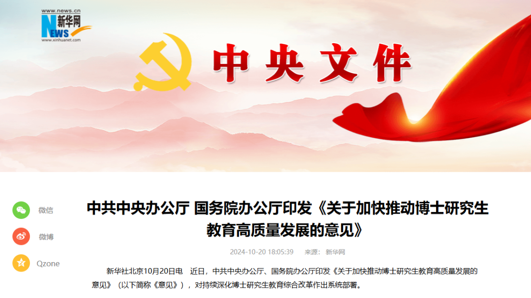 據(jù)新華社消息,近日,中共中央辦公廳、國務(wù)院辦公廳印發(fā)《關(guān)于加快推動博士研究生教育高質(zhì)量發(fā)展的意見》(以下簡稱《意見》),對持續(xù)深化博士研究生教育綜合改革作出系統(tǒng)部署。