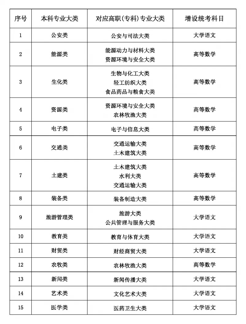 甘肅省普通專(zhuān)升本統(tǒng)一考試分專(zhuān)業(yè)大類(lèi)增設(shè)