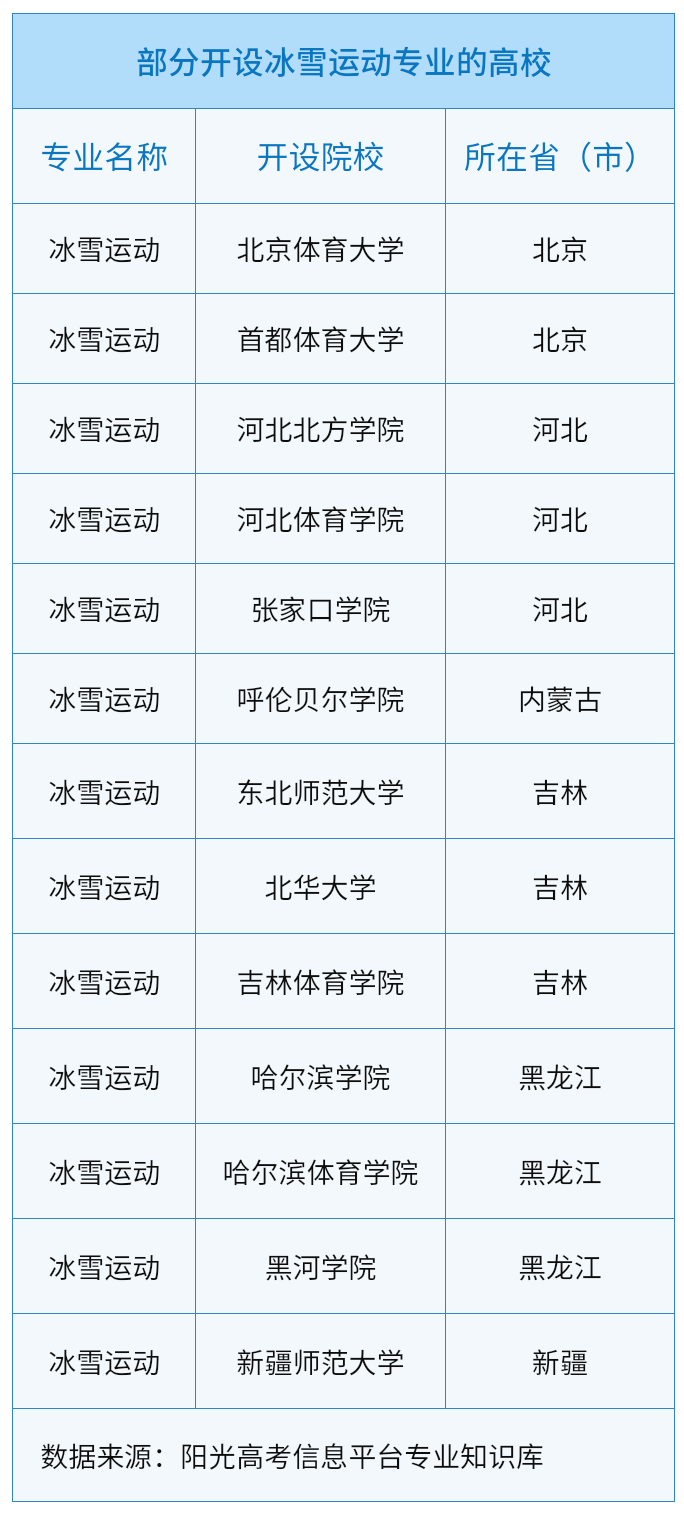 新疆師范大學(xué)也于今年新增體育教育專業(yè)(冰雪運(yùn)動(dòng)方向),并進(jìn)行了首次招生。