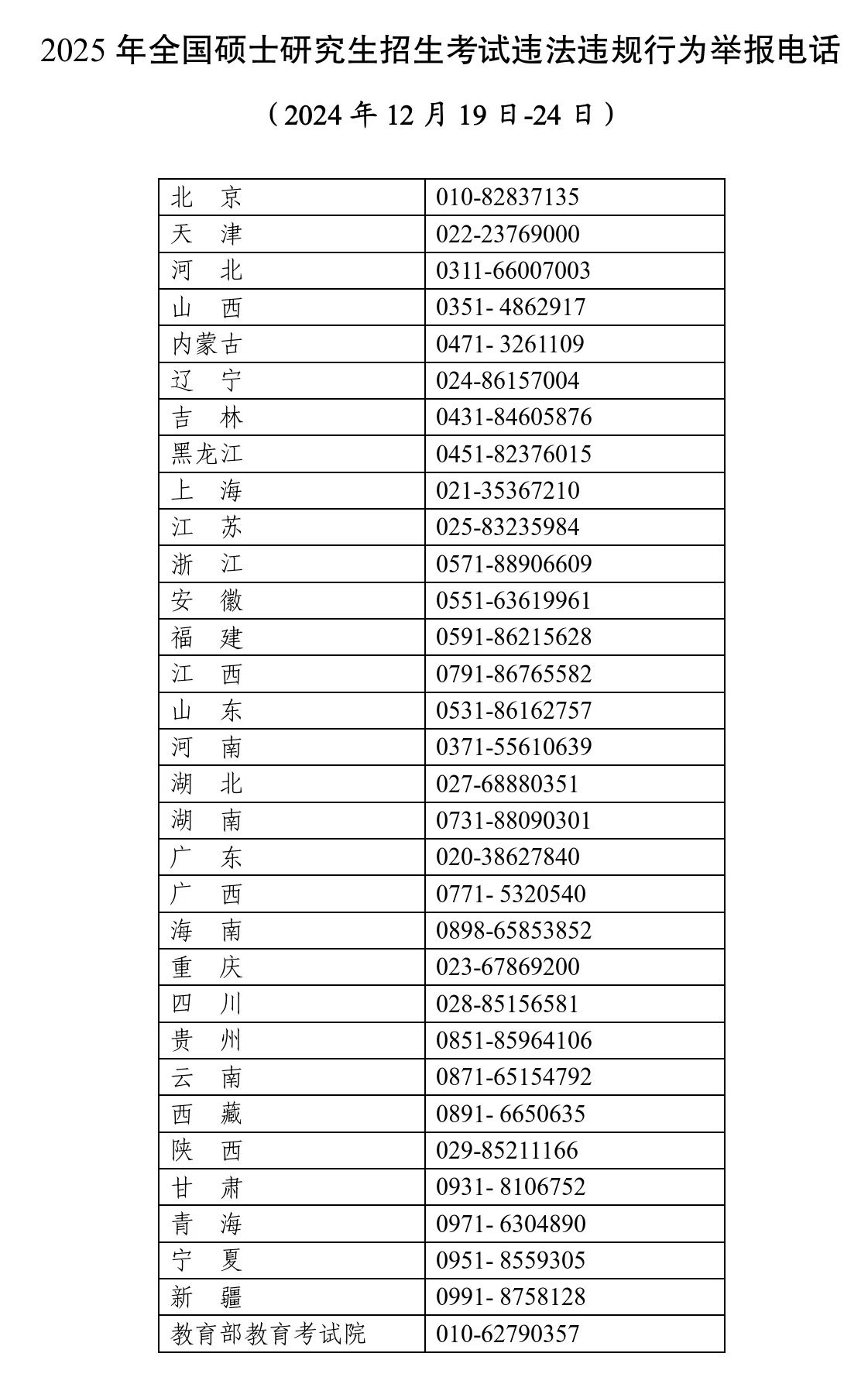 現(xiàn)將2025年全國碩士研究生招生考試違法違規(guī)行為舉報電話向社會公告,歡迎參與監(jiān)督,共同營造良好考試環(huán)境。