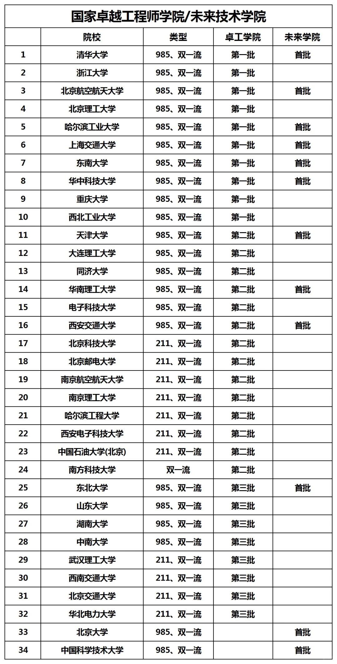 34所新工科名單: