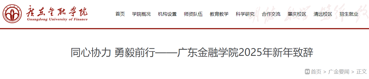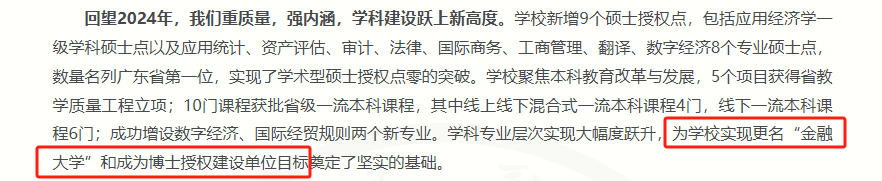 近日,廣東金融學院在2025年新年致辭中提到:學校學科專業(yè)層次實現(xiàn)大幅度躍升,為學校實現(xiàn)更名“金融大學”和成為博士授權建設單位目標奠定了堅實的基礎。