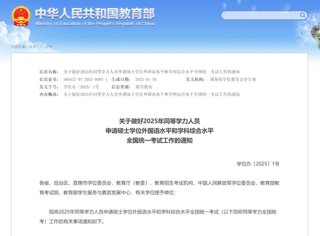 現(xiàn)將2025年同等學(xué)力人員申請(qǐng)碩士學(xué)位外國(guó)語(yǔ)水平和學(xué)科綜合水平全國(guó)統(tǒng)一考試(以下簡(jiǎn)稱同等學(xué)力全國(guó)統(tǒng)考)工作的有關(guān)事項(xiàng)通知如下: