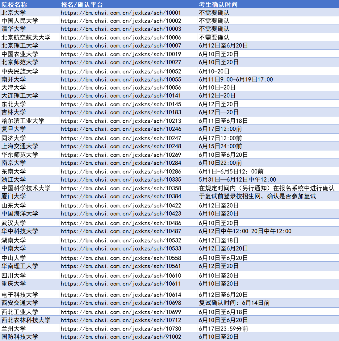 39所試點(diǎn)高校確認(rèn)網(wǎng)址及考生確認(rèn)時(shí)間