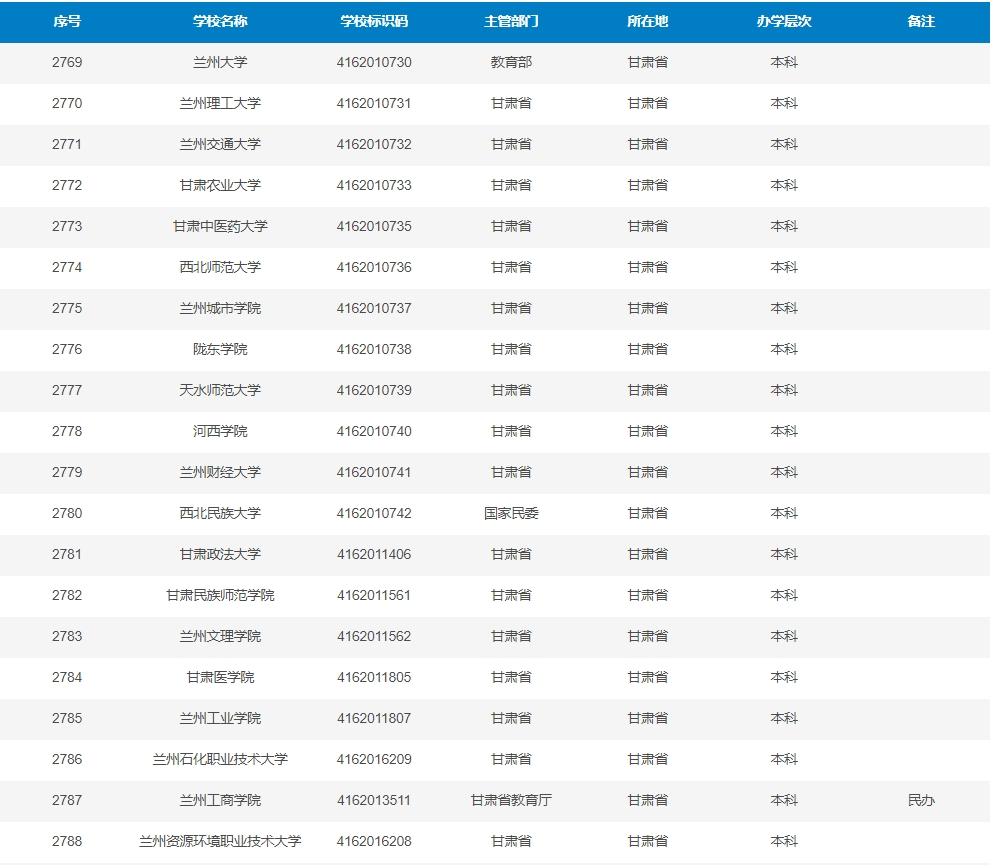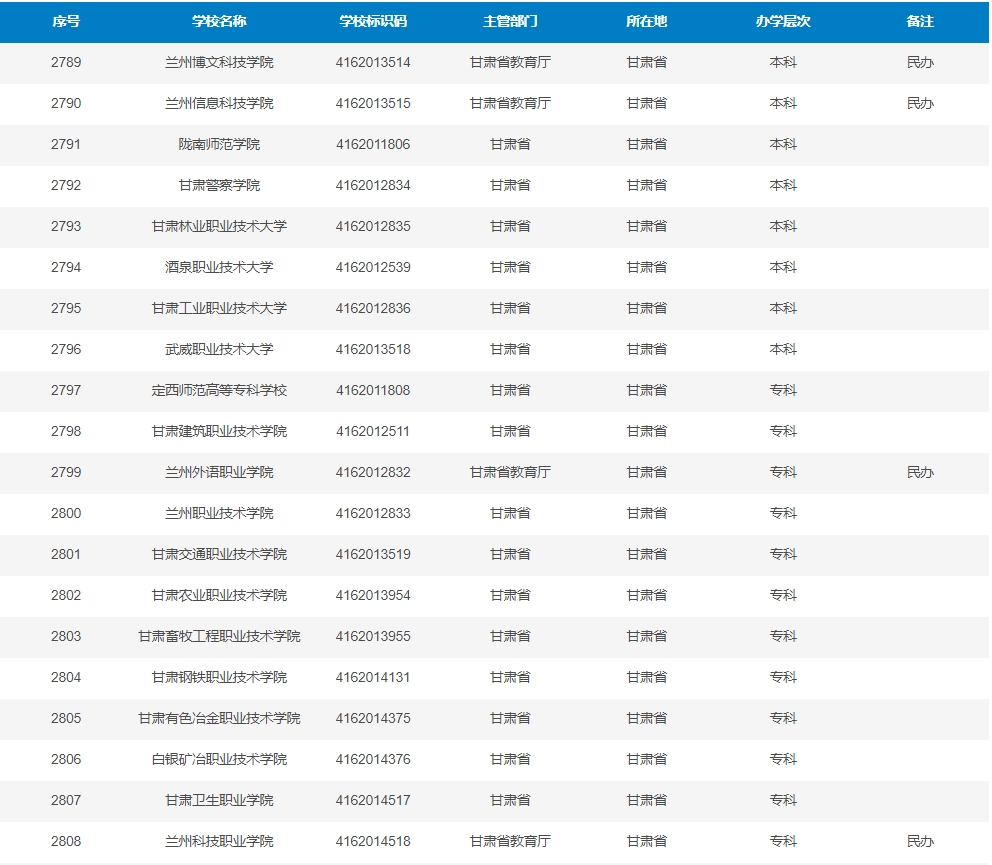 全國(guó)普通高等學(xué)校名單