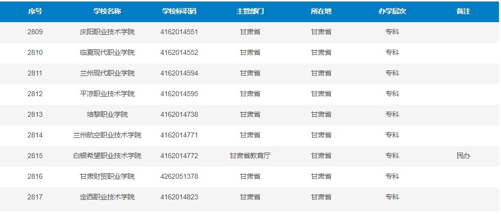 (甘肅4所)