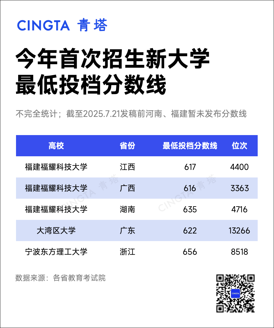 2025年本科普通批院校專(zhuān)業(yè)組投檔最低分?jǐn)?shù)線(xiàn)。今年首次招生的新大學(xué)——