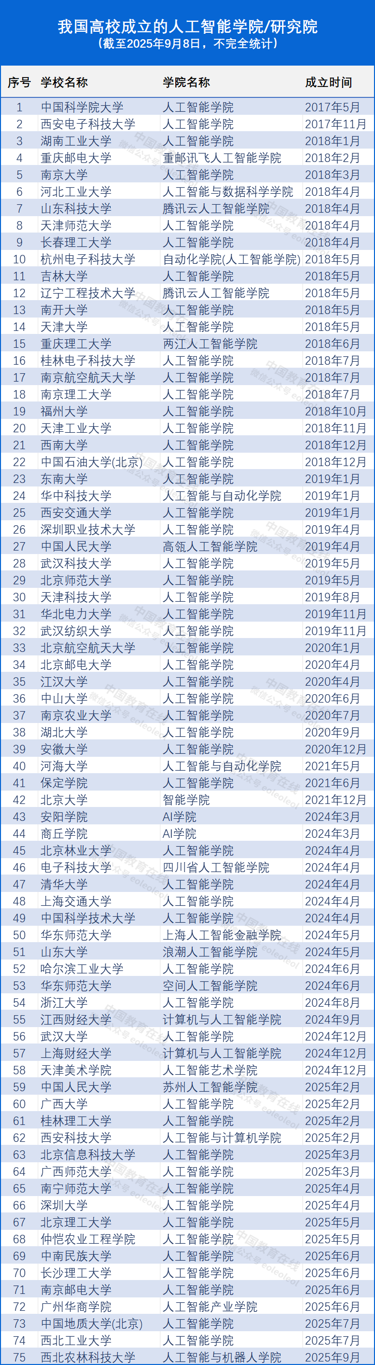據(jù)不完全統(tǒng)計,截至目前,我國已有超70所高校成立了人工智能學院。
