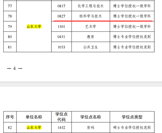 山東大學(xué)獲批化學(xué)工程與技術(shù)、核科學(xué)與技術(shù)、藝術(shù)學(xué)一級(jí)學(xué)科博士學(xué)位授權(quán)點(diǎn),教育、公共衛(wèi)生博士專業(yè)學(xué)位授權(quán)點(diǎn),以及密碼碩士專業(yè)學(xué)位授權(quán)點(diǎn)。