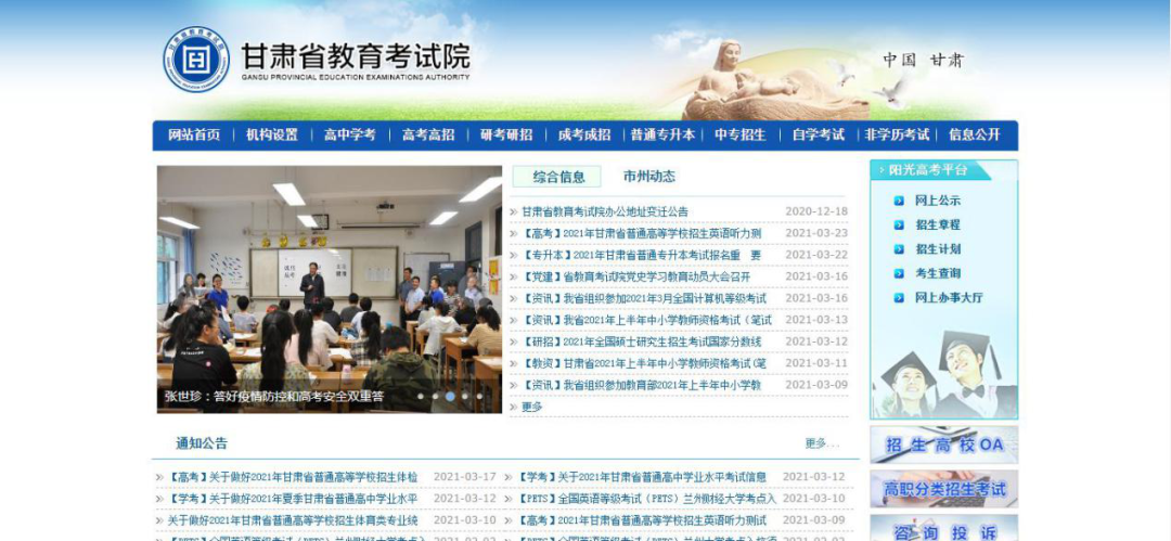 進(jìn)入“甘肅省教育考試院”官方網(wǎng)站