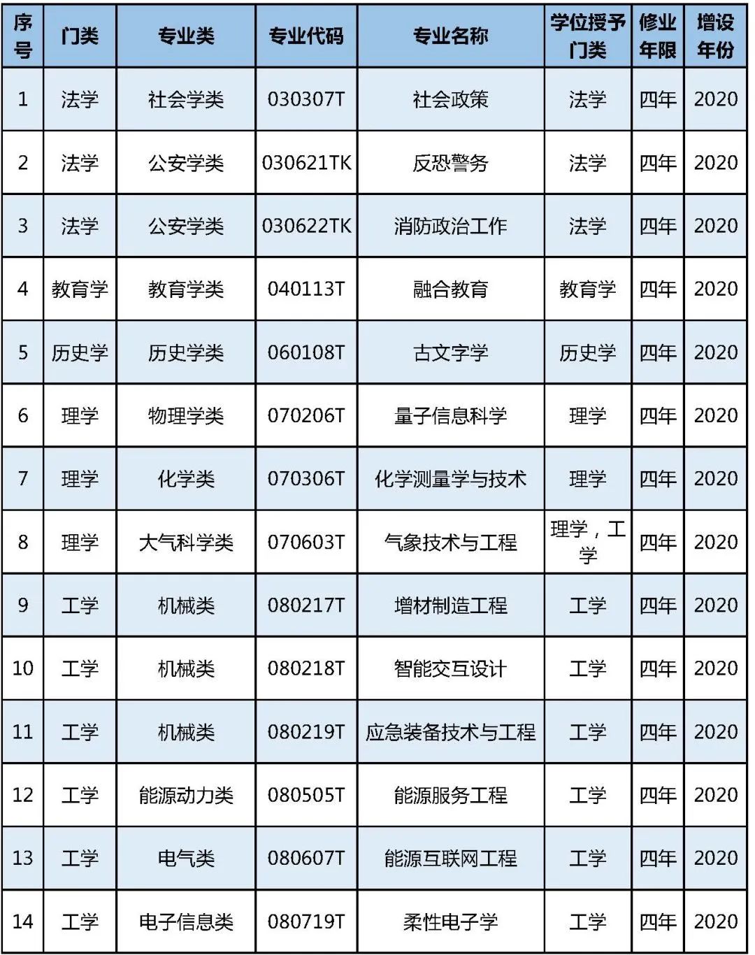 列入普通高等學(xué)校本科專業(yè)目錄的新專業(yè)名單(2021年)