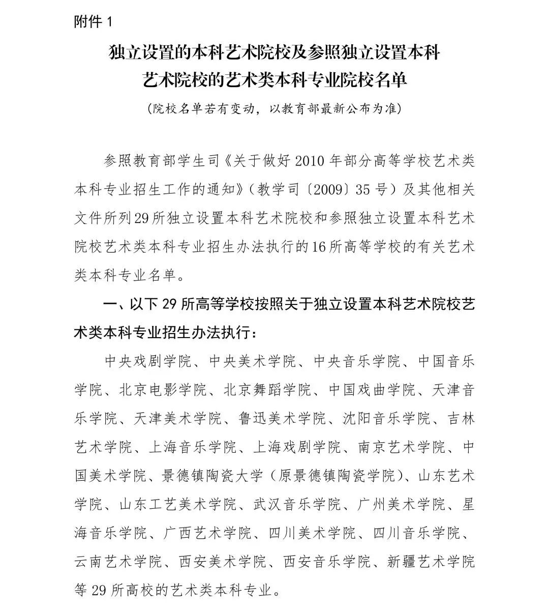 1.獨立設置的本科藝術院校及參照獨立設置本科藝術院校的藝術類本科專業(yè)院校名單