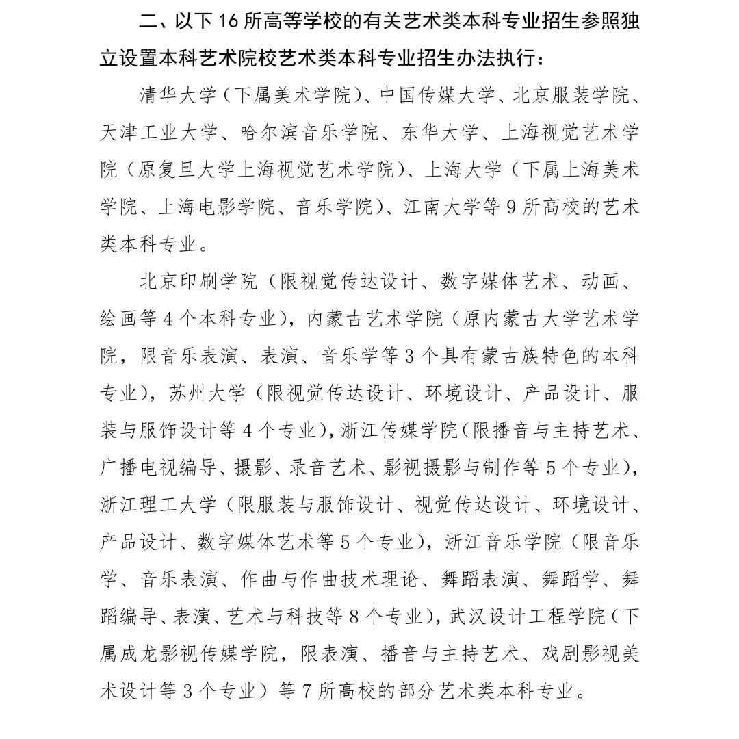 3.經教育部批準的獨立設置本科藝術類院校的藝術類本科專業(yè),可按校考不分省計劃編制來源計劃。其余藝術類本科專業(yè)及所有高校(含獨立設置本科藝術類院校)的藝術類高職(專科)專業(yè)均須編制分省來源計劃。