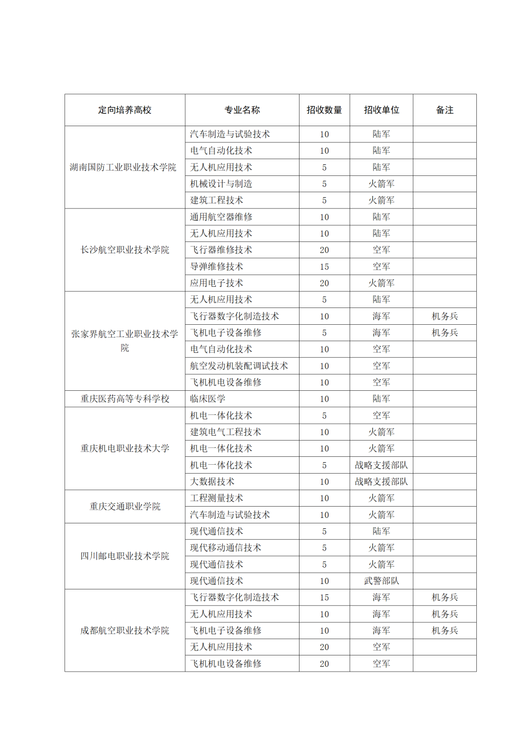 根據(jù)國家教育部、軍委政治工作部、軍委國防動員部《關(guān)于做好2021年招收定向培養(yǎng)士官工作的通知》要求,為深入貫徹軍民融合發(fā)展戰(zhàn)略,著力培養(yǎng)軍隊建設(shè)需要的高素質(zhì)士官人才,現(xiàn)就2021年我省招收定向培養(yǎng)士官工作有關(guān)問題公告如下: