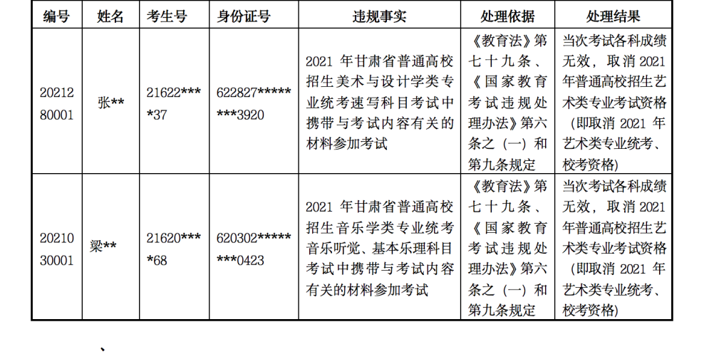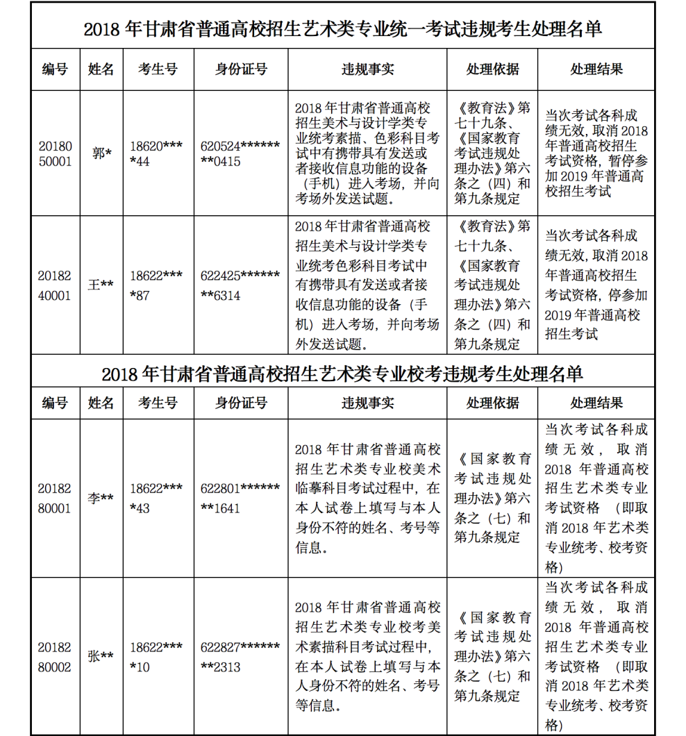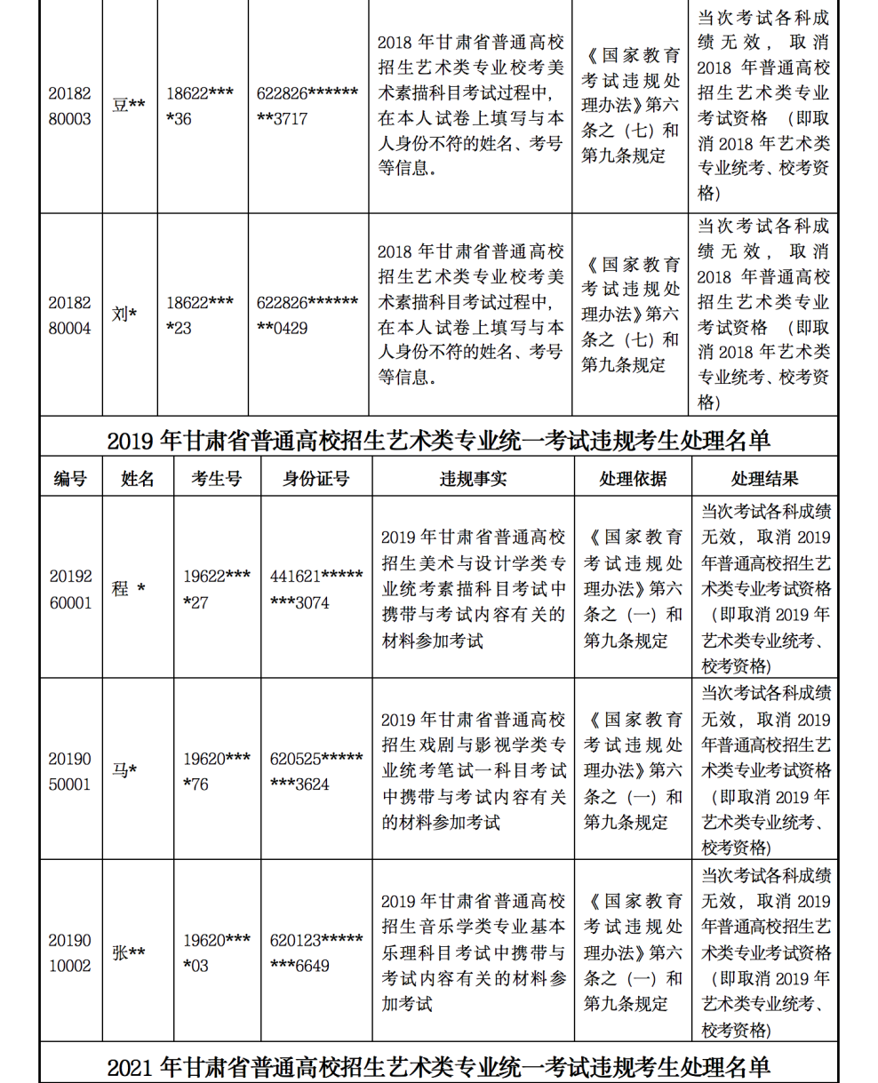 一、甘肅省近年普通高校招生藝術(shù)類專業(yè)違規(guī)考生處理情況回顧
