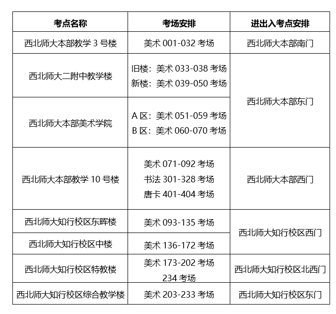 5.考試疫情防控措施將根據(jù)疫情防控形勢變化適時調(diào)整,請考生關(guān)注甘肅省教育考試院、西北師范大學(xué)本科招生官方網(wǎng)站和微信公眾號,及時了解相關(guān)信息。