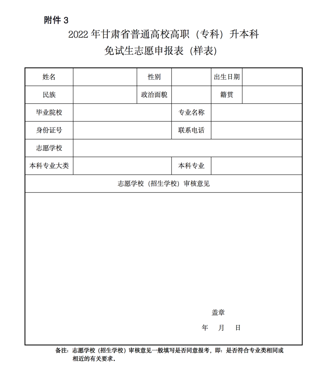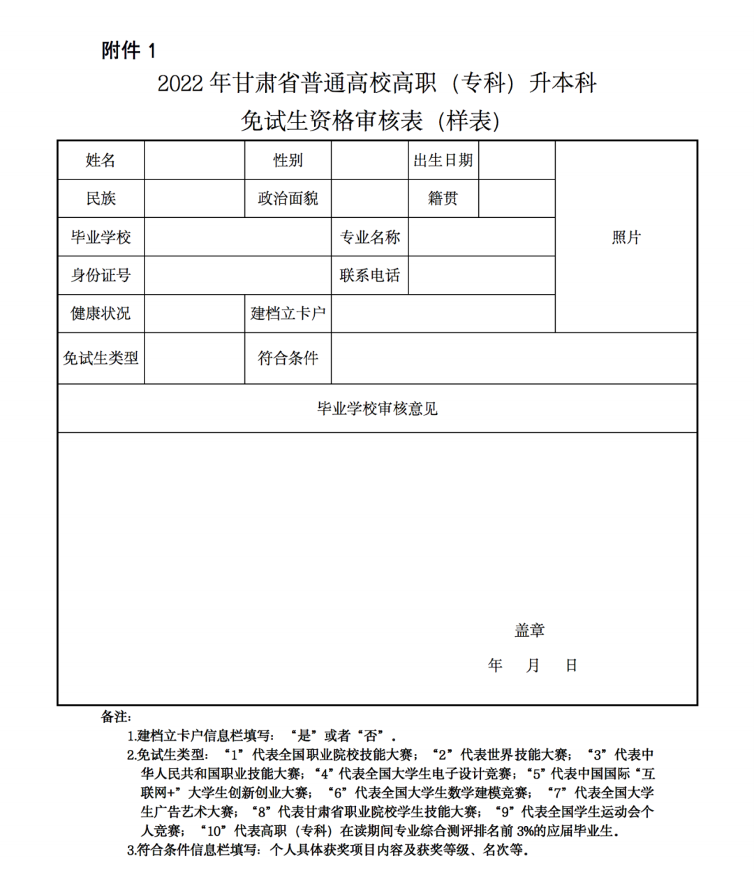 1.2022年甘肅省普通高校高職(??疲┥究泼庠嚿Y格審核表(樣表)