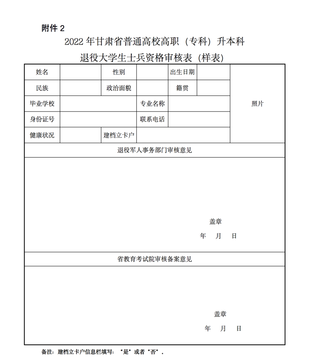 2.2022年甘肅省普通高校高職(??疲┥究仆艘鄞髮W(xué)生士兵資格審核表(樣表)
