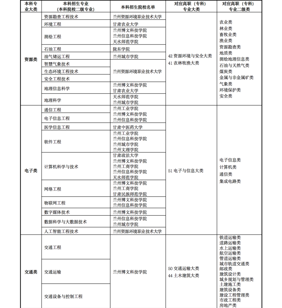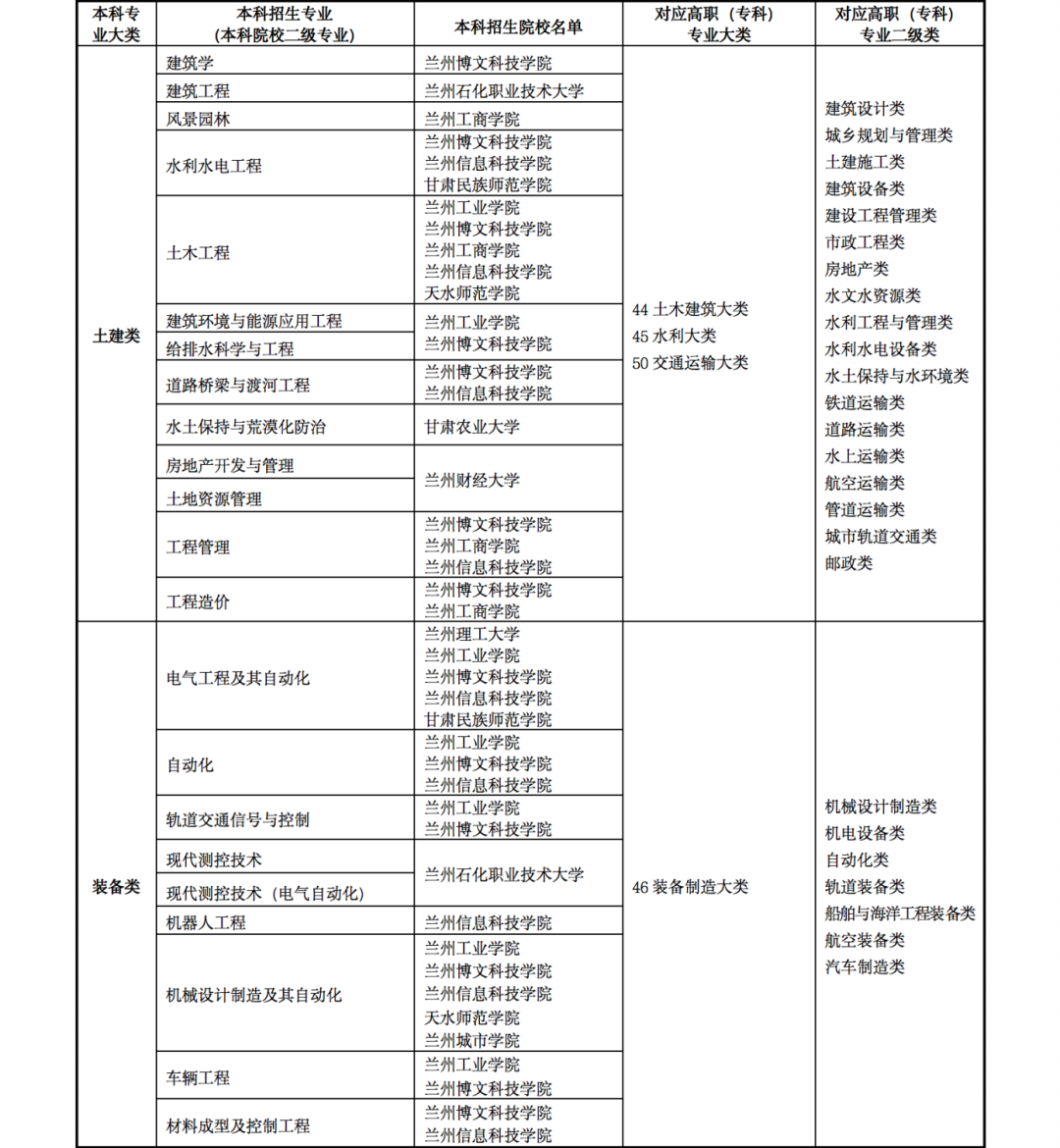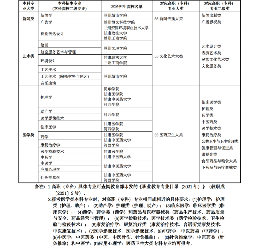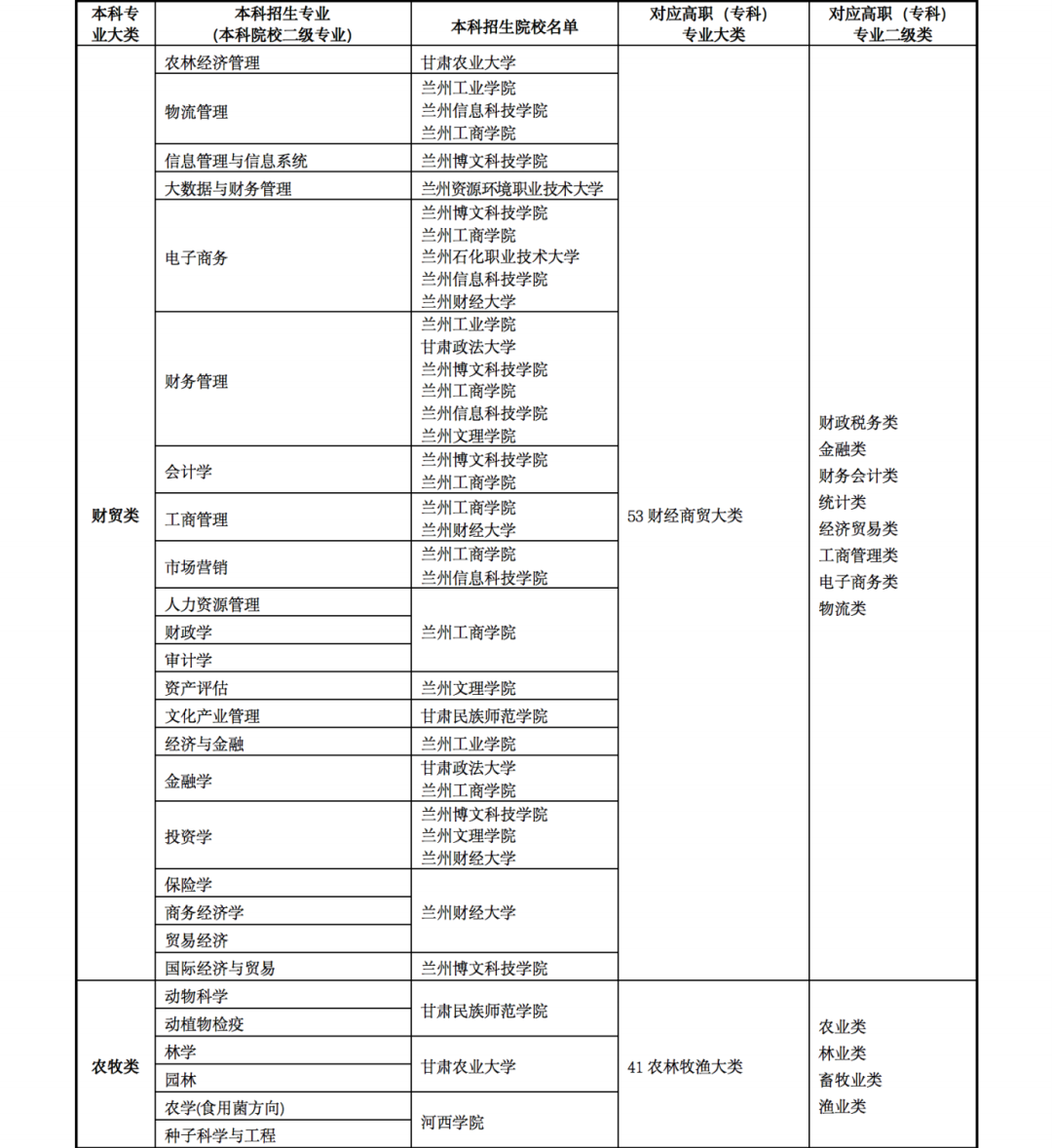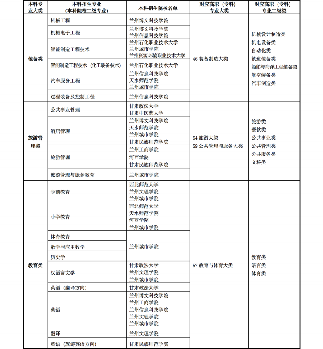 5.2022年甘肅省普通專升本高職(??疲┖捅究茖I(yè)大類對照表以及免試生招生學(xué)校及專業(yè)目錄
