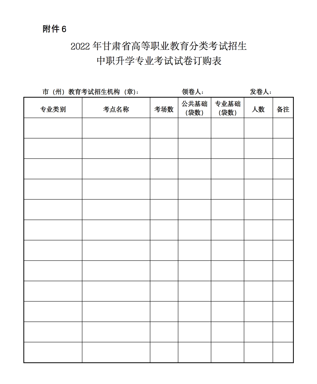 6.2022年甘肅省高等職業(yè)教育分類考試招生中職考試試卷訂購(gòu)表