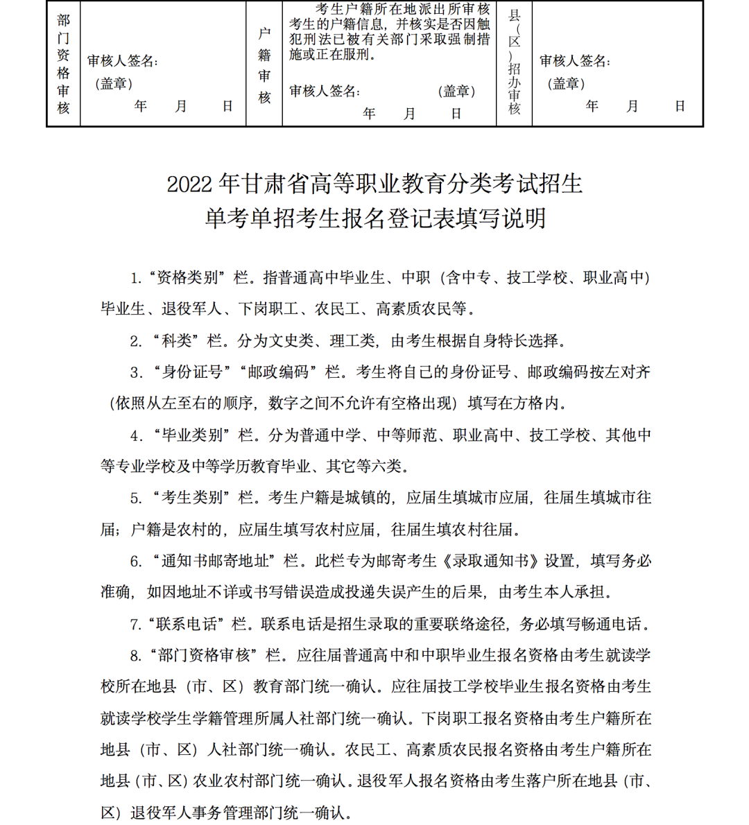 8.2022年甘肅省高等職業(yè)教育分類考試招生特殊群體考生報(bào)名登記表