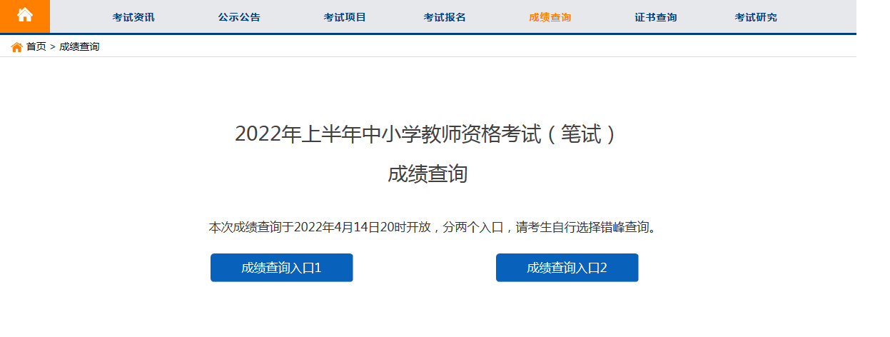 2022年上半年中小學教師資格考試(筆試)成績查分入口已于2022年4月14日20點起開放,請考生錯峰查詢。