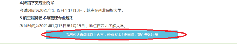 注冊時請先閱讀《考生須知》,閱讀完成后請點擊“我已經(jīng)認(rèn)真閱讀以上內(nèi)容,熟知考試注意事項,現(xiàn)在開始注冊”。