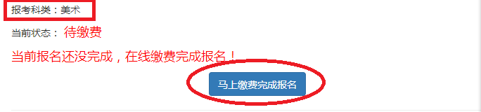 報名完成后,核對“報考類別”等內(nèi)容,確認(rèn)無誤后點擊“馬上繳費完成報名”。