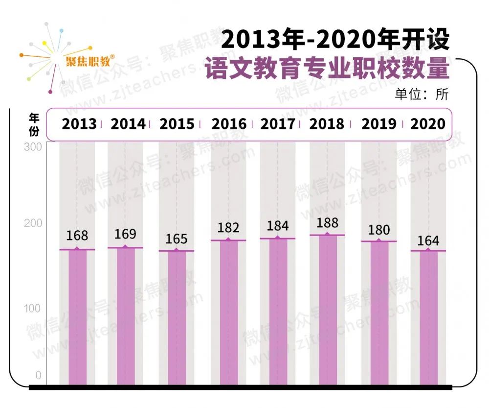 2013年至今,開設(shè)語文教育專業(yè)的高職院校數(shù)量始終維持在200個以下,且下降趨勢明顯。從數(shù)量上看,語文教育無疑不是受高職院校寵愛的專業(yè)。據(jù)2020年就業(yè)藍(lán)皮書顯示,該專業(yè)已連續(xù)三年被鎖定在紅牌專業(yè)(指失業(yè)量較大,就業(yè)率、薪資和就業(yè)滿意度綜合較低的專業(yè))。