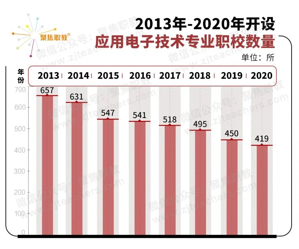 7年間,應(yīng)用電子技術(shù)專業(yè)開設(shè)院校數(shù)量從657所一路下滑至419所。下滑速度之快,不禁讓人困惑:“應(yīng)用電子技術(shù)”專業(yè)為何持續(xù)走低?
