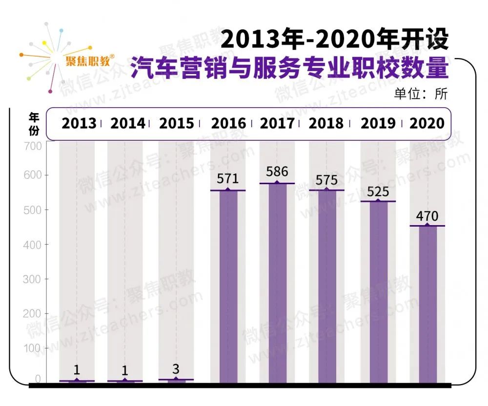 2016年以前,汽車營銷與服務(wù)叫汽車營銷與維修,且連續(xù)兩年僅有重慶科創(chuàng)職業(yè)學(xué)院開設(shè)該專業(yè),2015年增加了兩所院校。到2016年更名為汽車營銷與服務(wù)專業(yè)時,開設(shè)該專業(yè)的高職院校數(shù)量突增至571個。此后數(shù)據(jù)開始逐漸下降。汽車營銷與服務(wù)專業(yè)培養(yǎng)的是能夠適應(yīng)汽車維修、檢測、營銷等生產(chǎn)、管理、服務(wù)一線需要的高素質(zhì)、高技能的專業(yè)人才。該專業(yè)在高職院校遇冷,主要有兩方面的原因。一是學(xué)校沒有根據(jù)實(shí)際需求及發(fā)展趨勢有效設(shè)計課程,也沒有立足于崗位和工作流程對課程進(jìn)行科學(xué)梳理及調(diào)整。當(dāng)越來越多的新崗位出現(xiàn)在汽車行業(yè)時,職校的人才培養(yǎng)卻跟不上變化趨勢。二是高職院校汽車專業(yè)對學(xué)生的教育培養(yǎng),處于注重基礎(chǔ)訓(xùn)練階段,學(xué)生對自身未來職業(yè)發(fā)展并沒有明確的規(guī)劃,即便理論知識豐富,但卻缺乏奮斗目標(biāo),培養(yǎng)出來的畢業(yè)生常常在短期內(nèi)就產(chǎn)生對工作的抵觸情緒,這樣不僅無法滿足企業(yè)的實(shí)際需求,也阻礙了自身的持續(xù)發(fā)展。