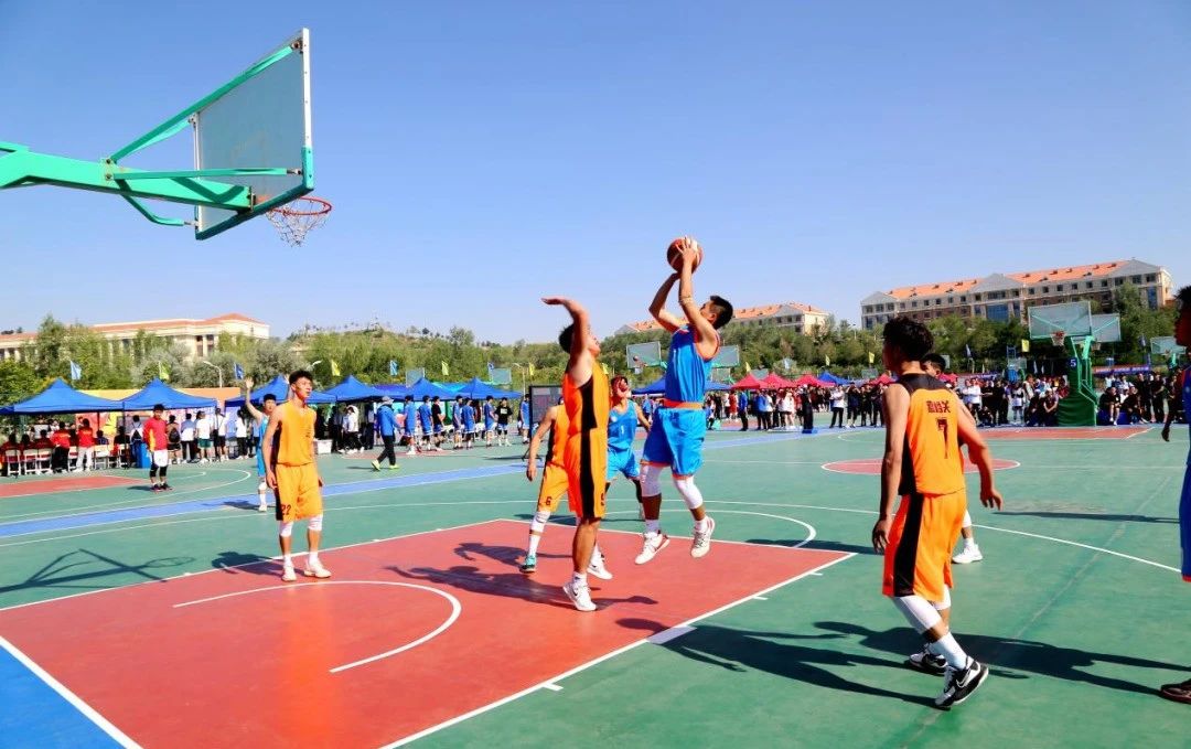 籃球比賽早上7時(shí)正式打響,當(dāng)日共有21場比賽,多所高校參賽代表隊(duì)運(yùn)“球”帷幄、激烈角逐?;@球場上,蘭州石化職業(yè)技術(shù)大學(xué)和蘭州資源環(huán)境職業(yè)技術(shù)大學(xué)激烈較量,雙方運(yùn)動(dòng)員生龍活虎,隊(duì)員們配合默契,打出了各自的戰(zhàn)術(shù)與風(fēng)采,為大家?guī)砹艘粓鲆曈X盛宴。