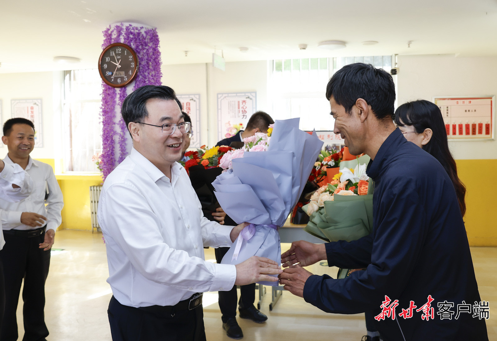 在東鄉(xiāng)縣兒童福利院,胡昌升為老師們送上鮮花,祝福大家教師節(jié)快樂。他說,你們愛生如子、視院如家,為孤殘兒童的教育成長傾注心血、付出真情,向你們表示感謝。胡昌升強(qiáng)調(diào),要深入實(shí)施“結(jié)對幫扶·愛心甘肅”工程,傾情傾力當(dāng)好孤殘兒童的“愛心爸爸”“愛心媽媽”,真正用愛浸潤心田、用心守護(hù)成長,讓孤殘兒童感受到親情的關(guān)愛和家的溫暖,讓他們在同一片藍(lán)天下健康成長。胡昌升看望了他結(jié)對幫扶的孤兒。第一次見面時(shí),胡昌升就同她約定好每天養(yǎng)成寫日記的習(xí)慣,學(xué)會與自己交朋友。三個(gè)多月來,她堅(jiān)持寫日記來記錄學(xué)習(xí)生活中的點(diǎn)點(diǎn)滴滴。胡昌升鼓勵(lì)她在新的學(xué)期里更加勤奮學(xué)習(xí),一步步打好基礎(chǔ),以優(yōu)異學(xué)習(xí)成績感恩師長、回報(bào)社會。