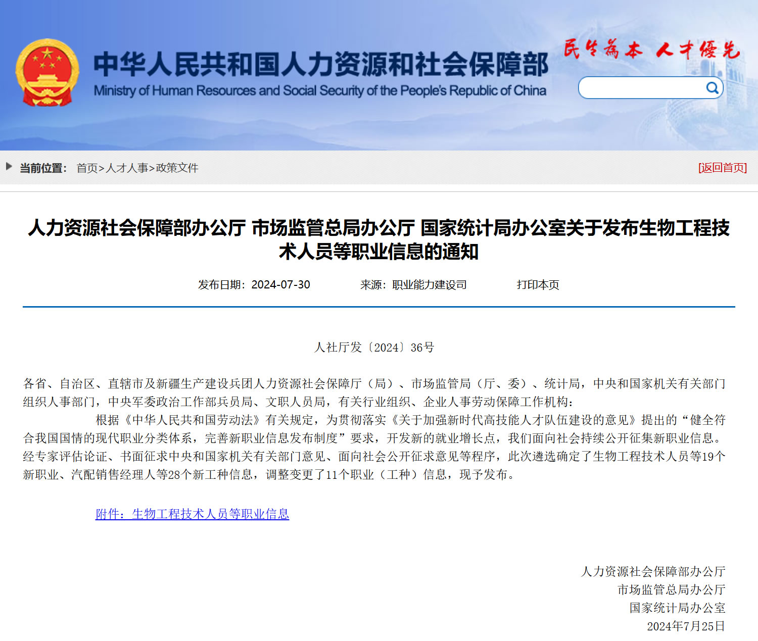 根據(jù)人社部2024年7月30日消息,人力資源和社會保障部會同國家市場監(jiān)督管理總局、國家統(tǒng)計(jì)局正式發(fā)布了關(guān)于發(fā)布生物工程技術(shù)人員等職業(yè)信息的通知,宣布網(wǎng)絡(luò)主播成為國家新職業(yè)之一。