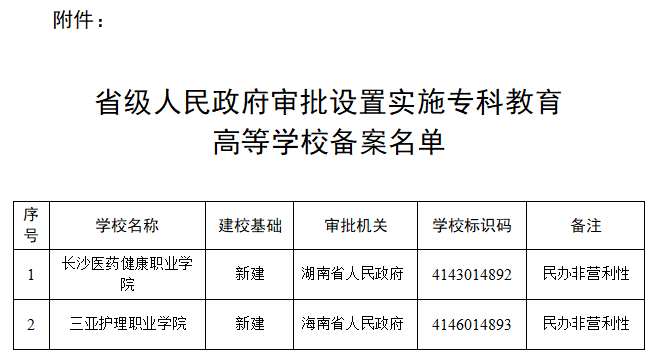 附件:省級(jí)人民政府審批設(shè)置實(shí)施專(zhuān)科教育高等學(xué)校備案名單