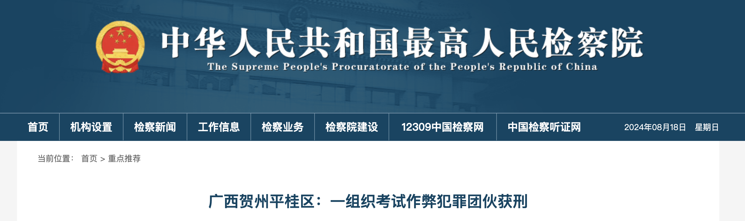 中國(guó)青年報(bào)注意到,就在8月9日,最高人民檢察院官網(wǎng)也公開了一起“組織作弊案”。