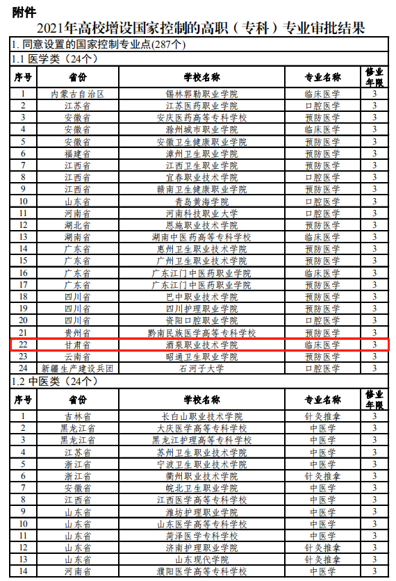 酒泉職業(yè)技術(shù)學(xué)院的臨床醫(yī)學(xué)、平?jīng)雎殬I(yè)技術(shù)學(xué)院的針灸推拿