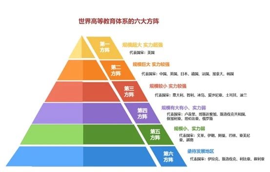 國際版“高等教育強國指數(shù)”顯示,世界高等教育體系根據(jù)發(fā)展階段可分為六大方陣,美國以絕對實力領(lǐng)跑,中國、英國、日本、德國等國家為第二方陣的代表國家,較去年發(fā)布的教育強國指數(shù)結(jié)果相比,英國超過日本成為排名第3國家。中國仍領(lǐng)跑第二方陣并縮小與美國的差距,從去年的58分提升到65分。